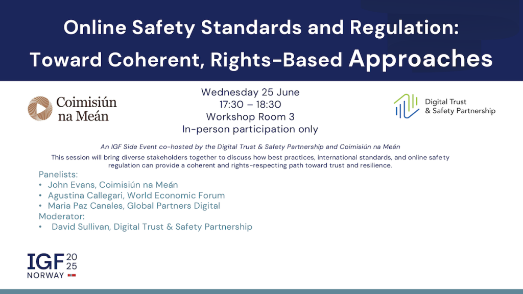The Digital Trust & Safety Partnership is a unique initiative focused on promoting a safer and more trustworthy internet. We are committed to developing, using and promoting industry best practices, assessment methods, and international standards, to ensure consumer trust and safety when using digital services.